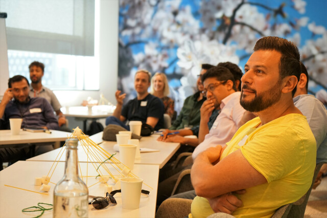 خلال ورشة العمل الخاصة بنا ستعمل مع صاحب العمل ولاجئين آخرين على مهاراتك الإحترافية و يمكنك التفكير هنا على إنضمامك لورشةعمل بخصوص التدرب على برنامج (اللينكد إن) أو على طريقة التقدم لعمل ما أو الحصول على دورة عن كيفة إنشاء موقع على الإنترنت وهذا يعتبر بالنسبة لصاحب العمل طريقة أقل صعوبة للتعرف عليك ومعرفة فيما إذا كنت مرشح محتمل مهم بالنسبة له
